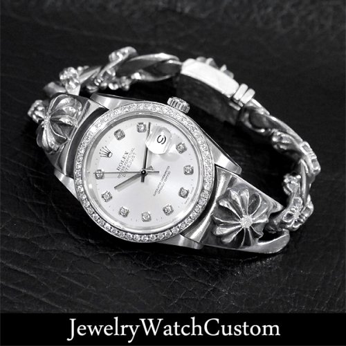 CHROME HEARTS ROLEX デイトジャストの人気ウォッチバンド、ファンシーチェーンへのアフターダイヤが完成致しました。