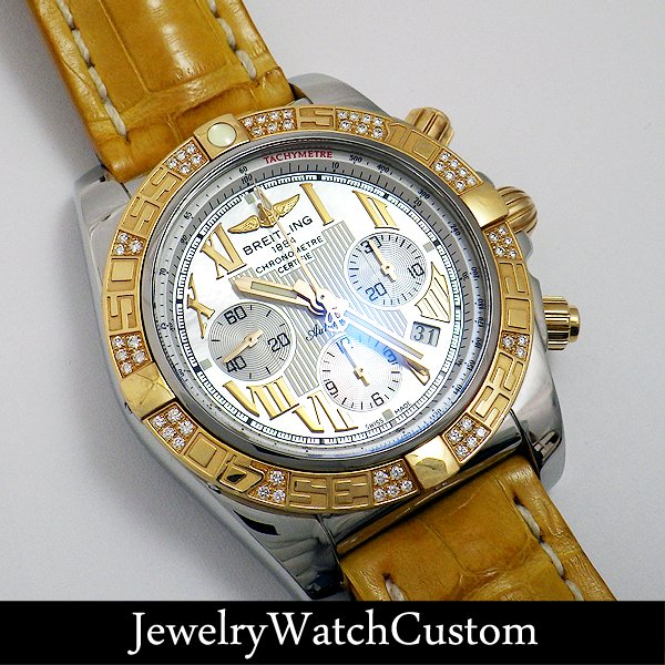 BREITLING時計の人気モデル「クロノマット44 MOPローマンベゼル RG」へのアフターダイヤ実績です。