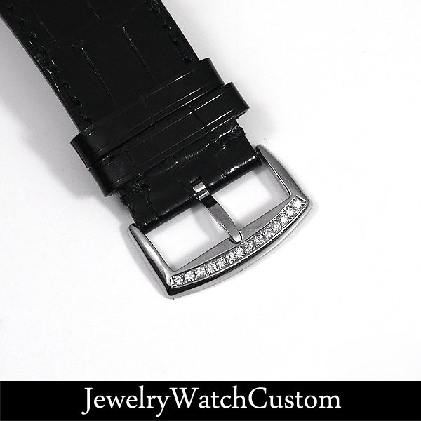 ベゼル、バックルの全てにダイヤモンドをセッティングしたパヴェダイヤとなります。