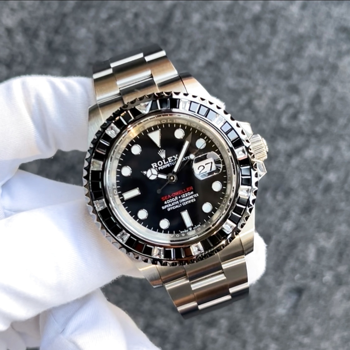 ロレックスシードゥエラー 116600のアフターダイヤ加工 「バゲットダイヤベゼル製作」が完成致しました。
